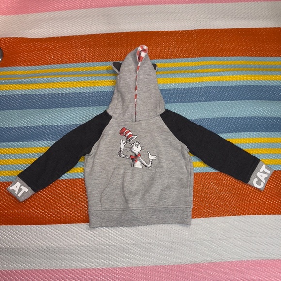 Dr. Seuss Cat in the Hat Gray Red Pullover Hoodie Boys Size 3T