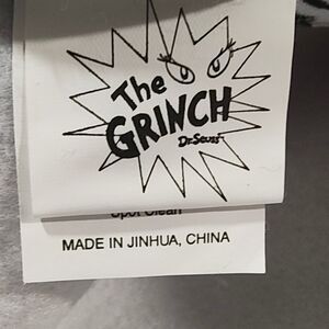 Celebrate the holidays with this brand new Dr. Seuss Santa hat, featuring bold red and white stripes and the iconic Grinch's face. Crafted from soft plush material, it's both cozy and stylish for festive occasions.