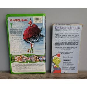 For sale is this Dr. Seuss Set of 2 Christmas VHS How The Grinch Stole Christmas Animated (Early 1980's MGM) Live Action (2001 Universal) Pre-Owned. Each tape has been thoroughly tested and played in their entirety to ensure full functionality. Comes from a Smoke-Free Shop.