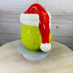 Dr. Seuss The Grinch 65th Anniversary Ceramic Cookie Jar 9” Santa Hat NEW