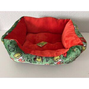Dr. Seuss The Grinch Small Dog Cat Pet Cozy Cuddler Bed Christmas Green Red NEW 20” x 16” x 8” NEW