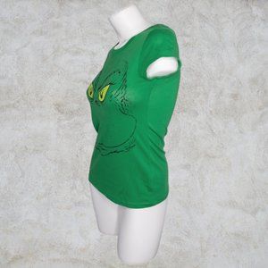 Dr Seuss The Grinch Green Medium Tee Shirt Full Face on Front Yellow Eyes Cotton