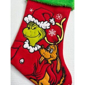 Dr Seuss The Grinch Max Christmas Stocking 22" Red Green Fleece Felt New