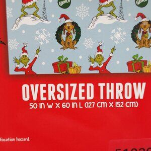 Dr. Seuss The Grinch Oversized Plush Throw Blanket 50x60" Holiday Christmas Blue