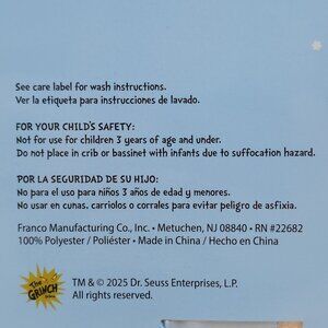 A large, cozy Queen-sized blanket featuring The Grinch and festive Christmas illustrations. Ideal for adding holiday cheer to your bedroom or living space.