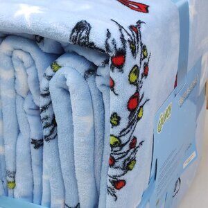 Dr Seuss The Grinch Queen Plush Blanket 90" x 90" Christmas Holiday Family Throw