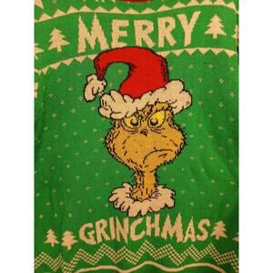 Dr. Seuss The Grinch Ugly Christmas Sweater Men's Size L 42-44 Green Long Sleeves