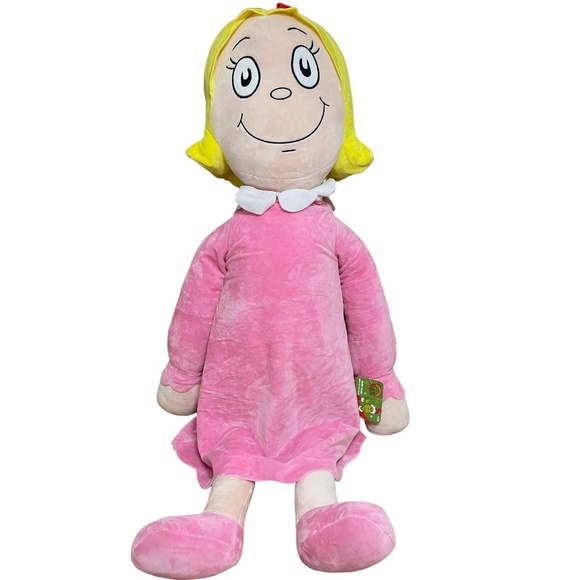 The image shows a large plush doll of Cindy Lou Who from Dr. Seuss' How the Grinch Stole Christmas!.