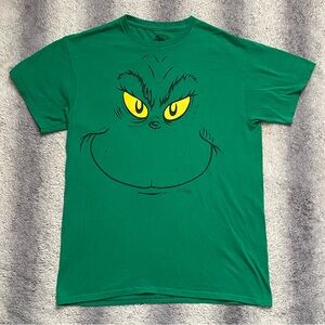 Dr Seuss The Grinch Who Stole Christmas Graphic Tee Shirt Mens Medium Green Face