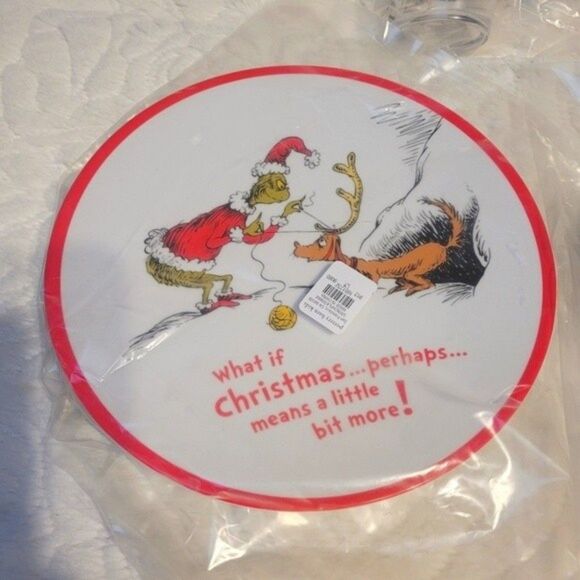 Give mealtime a playful update that your kiddos (or kids at heart) will love. Decorated with images of The Grinch & his dog Max