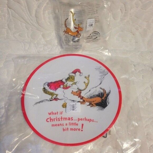 Dr Seuss The Grinch and Max Plate and Max Tumbler 2 Piece Set New OOS Rare