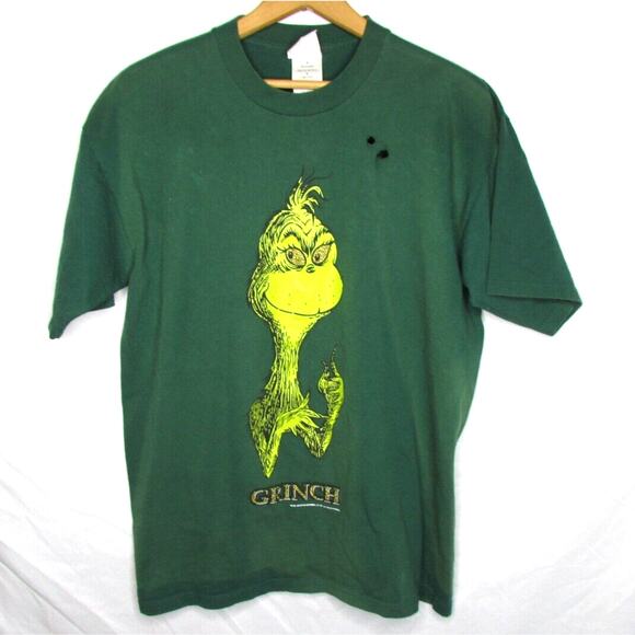Seuss Wear Grinch Holiday T-Shirt Made in USA Distressed Size Large Vintage 1997