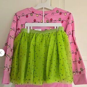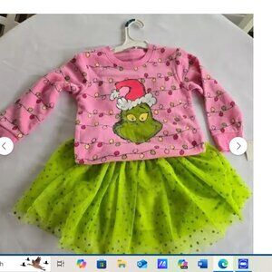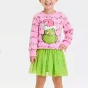 Dr Suess THE GRINCH Girls Outfit - Pink Green Sweatshirt & Tutu Skirt - Size 5T