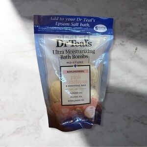 New, still sealed Dr. Teals ultra moisturizing pink Himalayan bath bombs with jojoba and sunflower oils. Set of 5.