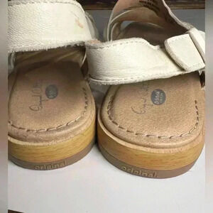 Dr. scholl’s sling back leather strappy sandal ruched square toe cushion 8,5