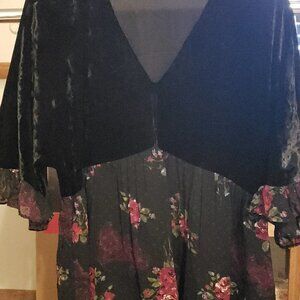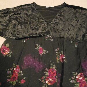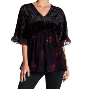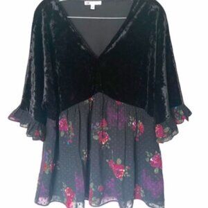 Dr2 (Daniel Rainn) Black Velvet Mixed Floral Top