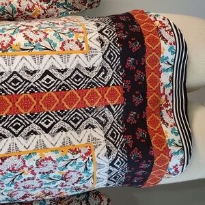 This boheimian style blouse is in very good condition and quality. Measurements are pit to pit flat measurement is 20". sleeves are 12". Top to bottom length is 25". Consider making a bundle and get an even better offer.