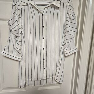 DR2 Ivory Black Stripe Button-Up Blouse Size M