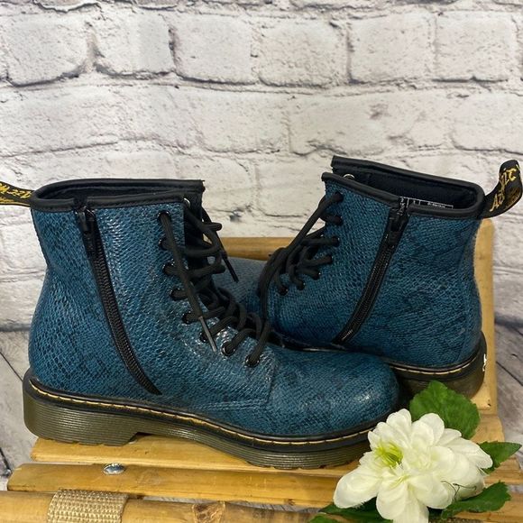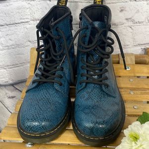 Dr Martens Delaney Blue Python Print Combat Boots Size 3/34