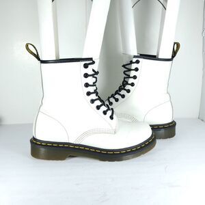 Dr. Martens Women's 11821 Pascal US7 White Leather Lace Up Combat Boots