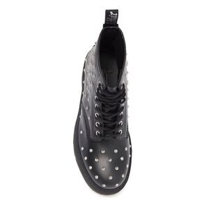 Polished, cone studs add a glamorous edge to a classic pair of leather combat boots set on a signature bouncing sole for all day comfort.