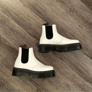 A twist on the classic Dr. Martens leather: durable, with a smooth and polished finish