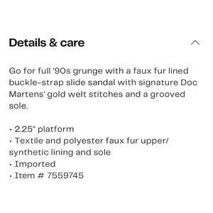 Go for full '90s grunge with a faux fur lined buckle-strap slide sandal with signature Doc Martens' gold welt stitches and a grooved sole.
