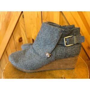 Dr Scholls Women's 8.5 Ankle Boots Create Wedge Bootie Gray Plaid Side Zip