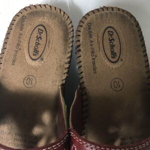 Dr Scholl’s insoles leather burgundy red sandals size 10 pre owned in good used condition no tear normal wear.