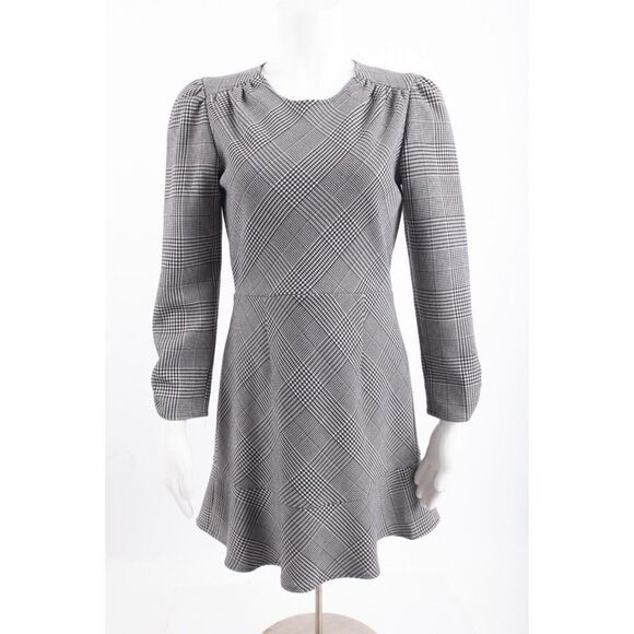 Dra Womans Gordon Plaid Lydia Dress Size L Black White Long Sleeve NWT