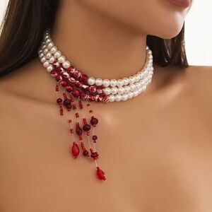 Dracula Red blood Pearl Scarlet Crystal Choker – Queen’s Statement Necklace