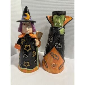 Dracula & Witch Halloween Ceramic Figuerine Set, Halloween Decor, Centerpiece