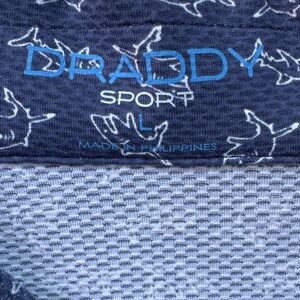 Draddy Sport Polo Golf Shirt. Men’s Large. Blue White Shark Pattern. Lightweight