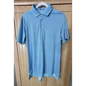 Draddy Sport Polo Shirt Mens Medium Blue Striped Performance Golf No Course Logo