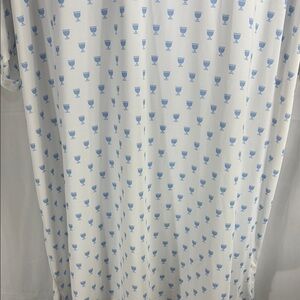 This polo shirt features a playful polka dot pattern on a crisp white and blue background, offering a sophisticated yet casual look. Made from lightweight fabric, it's perfect for leisure activities or a day on the golf course. The traditional polo collar and short sleeves add to its classic appeal. PreOwned