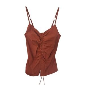 Orange cotton (73% Cotton, 19% Polyester, 8% Nylon). Top. V-neck. Sleeveless. Tie closure. 19.5" from shoulder to hemline. Imported.