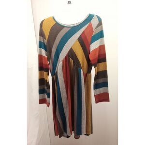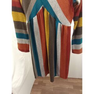 Pre-owned Egy California l multi-colored striped dress. ?vintage. Lightweight polyester, stretchy material. long sleeves scoop neck above the knee or longer depending on height
