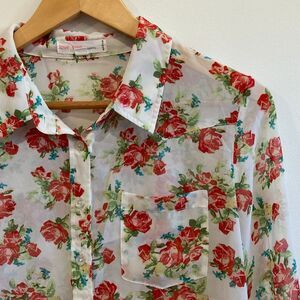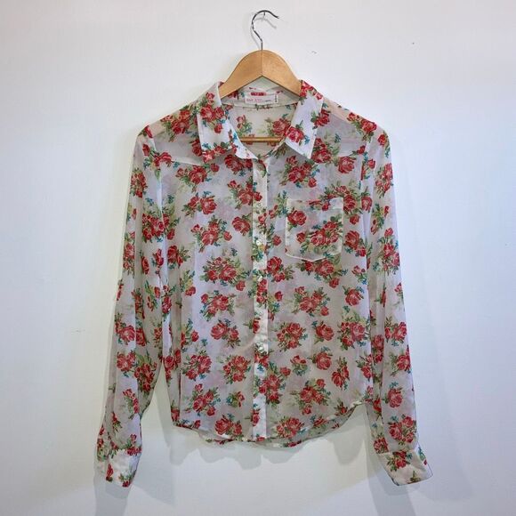 Details: Soft sheer button down with beautiful floral print. Sleeves can be rolled up