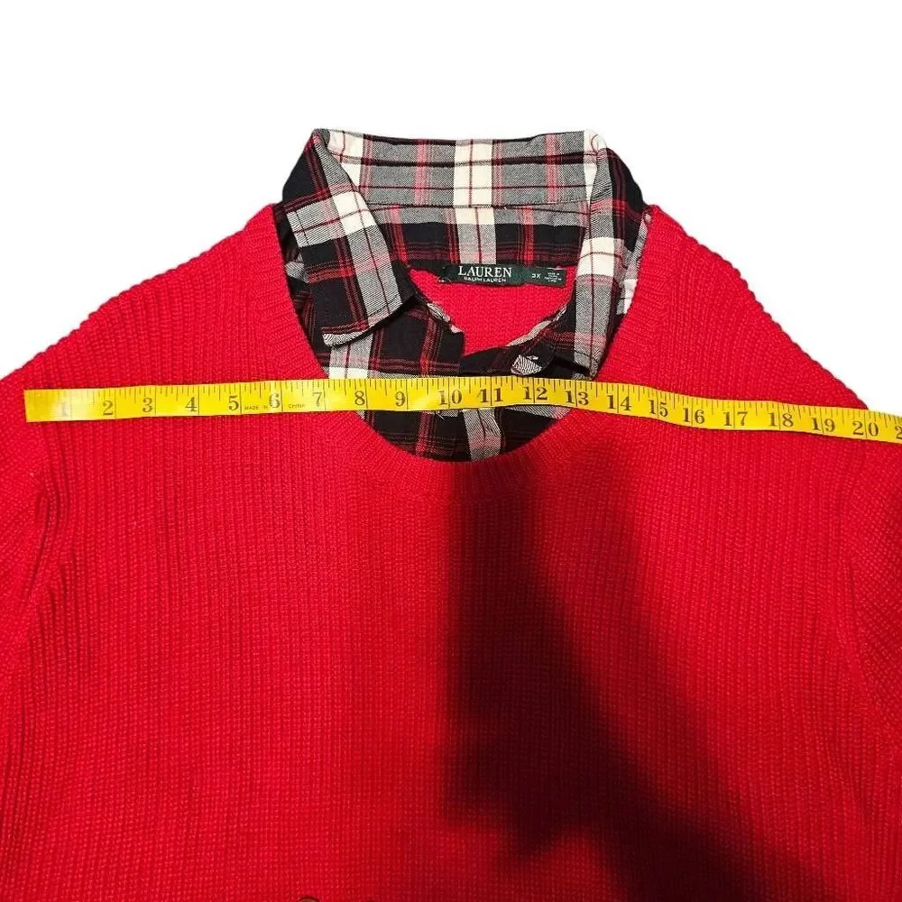 Ralph Lauren Red Sweater Plaid Shirt Layer Size 3X