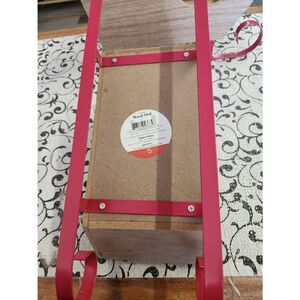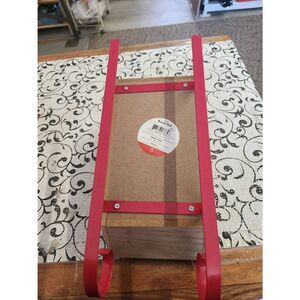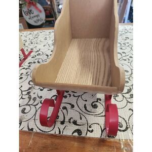 Pair of two wooden sleds with red metal rumners.