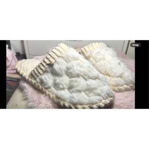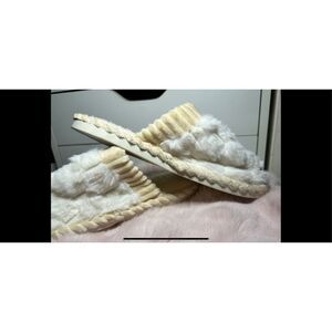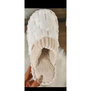 Draft Listing Cream and white colored plush closed toe slippers size 10.5/11