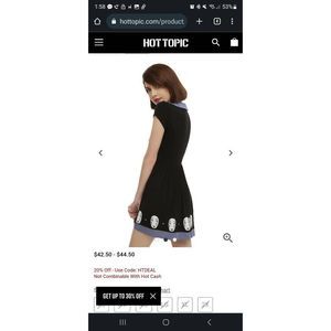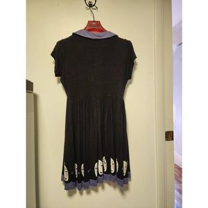 Black dress from Spirited Away with a No-Face mask printed skirt and a lilac peter pan collar.