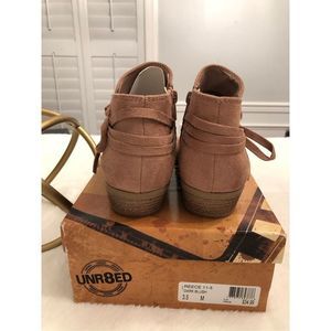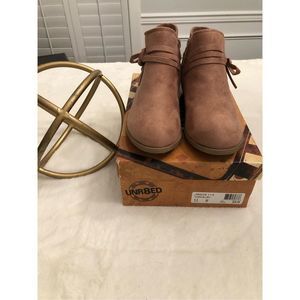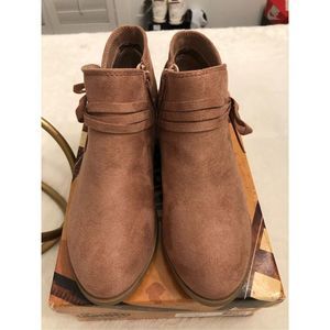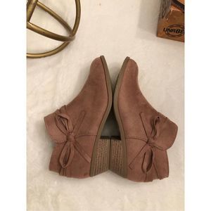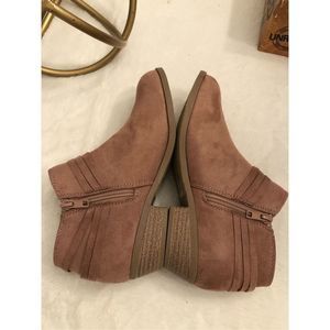 Super cute new dark blush booties in a big girls size 3.5 smoke and pet free home.