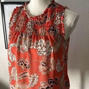 Women’s size small orange paisley print blouse In amazing condition spense Brand Length 26” Armpit to armpit 20”