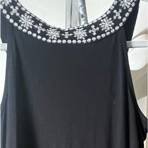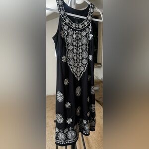 Black & Silver Embroidery size Small . With a Petal Design Flower with a Diamond stud in Center. With Beautiful Design on Bottom of Dress Lining . With a Lining inside dress as week , used put excellent condition .