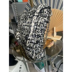 Beautiful tweed Alexander McQueen crossbody bag silver chain and leather wristlet strap