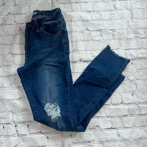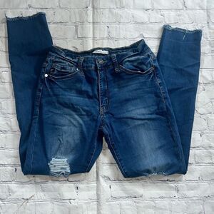 Great preowned condition KanCan skinny jeans. High waisted. Fringed ankle. Manufacturer holes. Women’s 9/28 Smoking free home