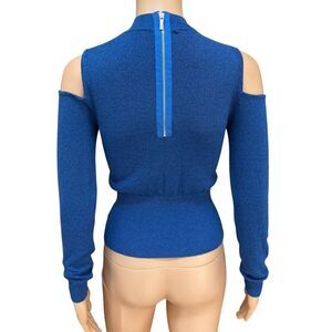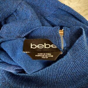 Bebe sexy blue knit cold shoulder ribbed stretch sweater size XS