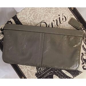 Dark gray patent leather clutch purse. 7x 4