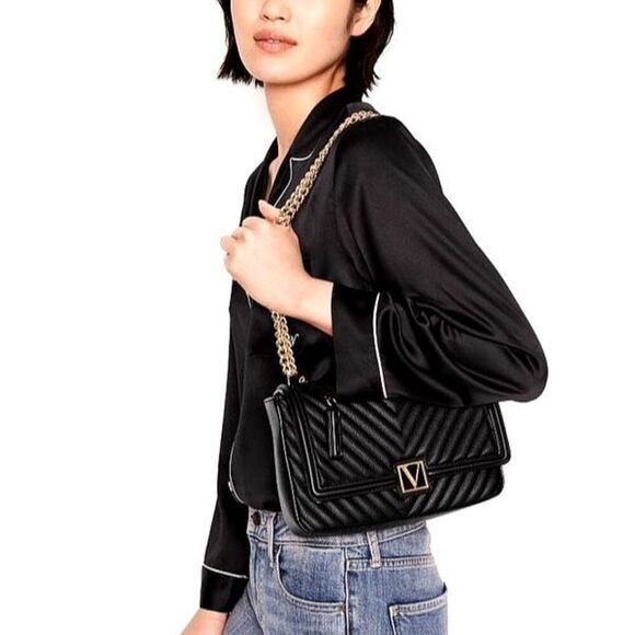 tructured and chic, this style wears two ways. The jewelry-like chain strap goes from shoulder to crossbody with ease. In our signature V-Quilt finish with V Monogram Hardware.